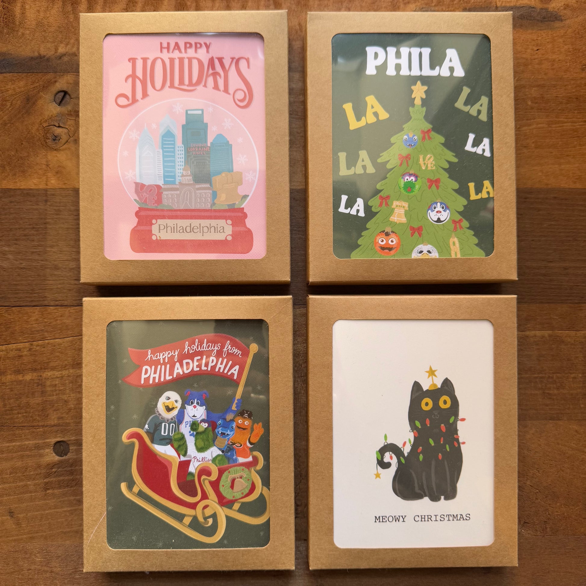 Send everyone on your list this year these fun Philly cards! 8 blank cards and envelopes in each pack. Each sold separately. Choose from: