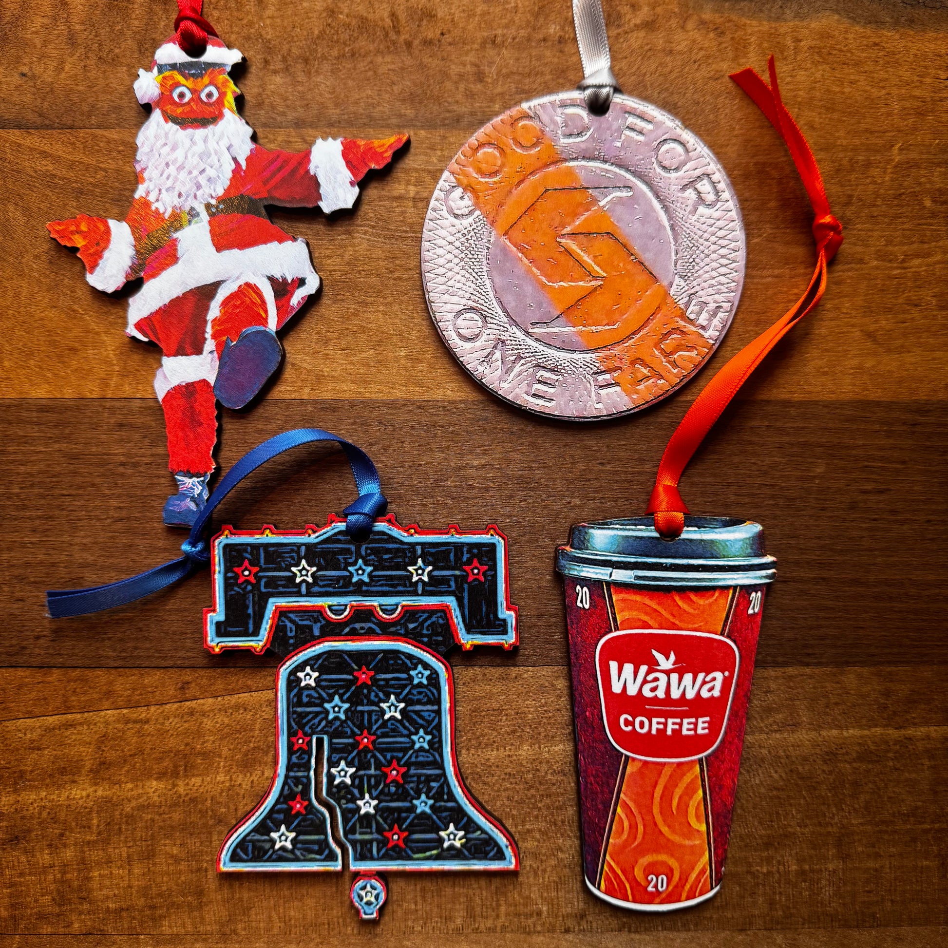 Grab a Jawnament before they disappear! These insanely popular ornaments are back at Philadelphia Independents! Laser cut from 1/8" birch wood. Ready to hang with color-coordinating satin ribbon. Each sold separately.