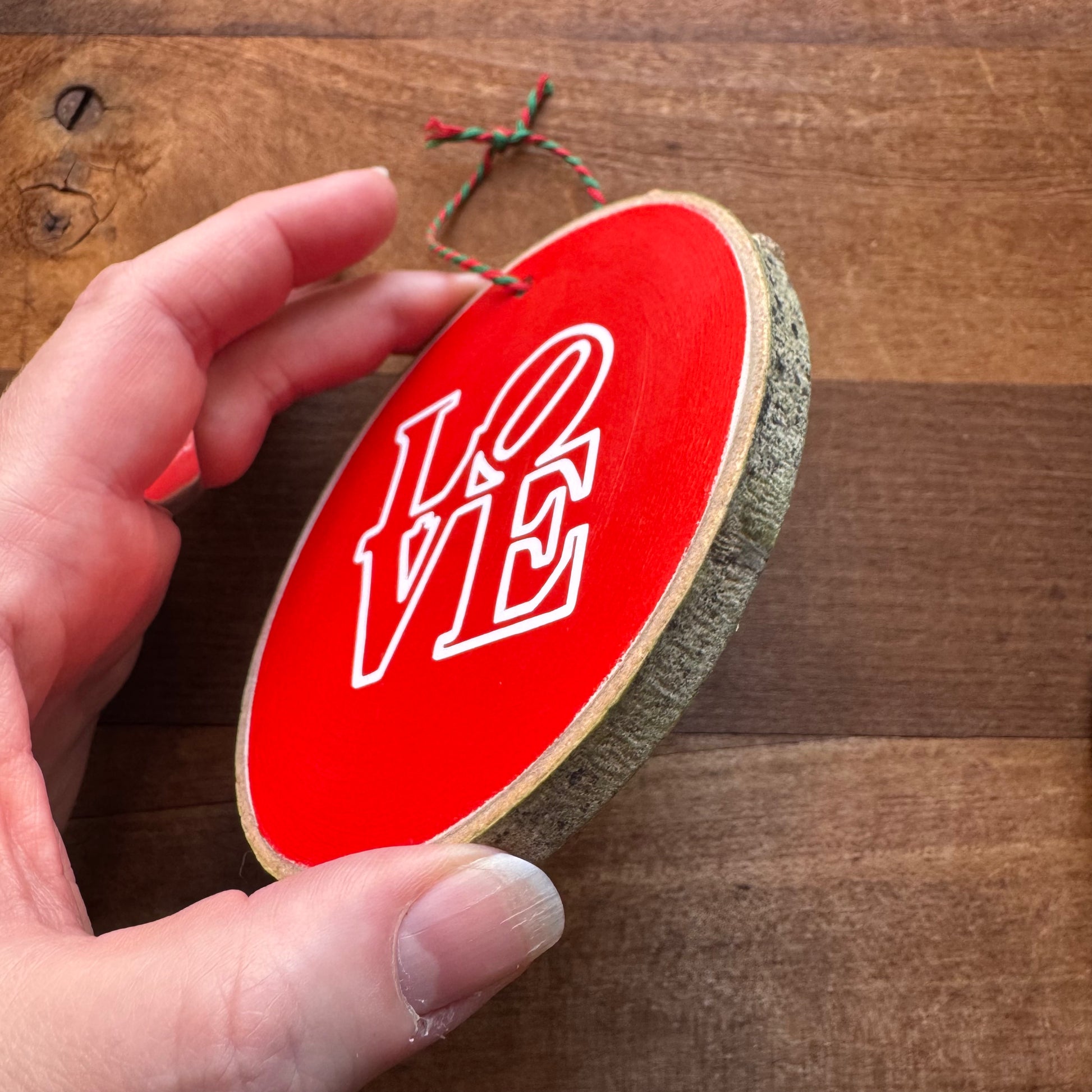 Trim your tree with these Philly pride painted birch wood ornaments! Ready to hang. Approx. 4 1/4" x 3 5/8" x 1/4". Each sold separately. GO BIRDS!